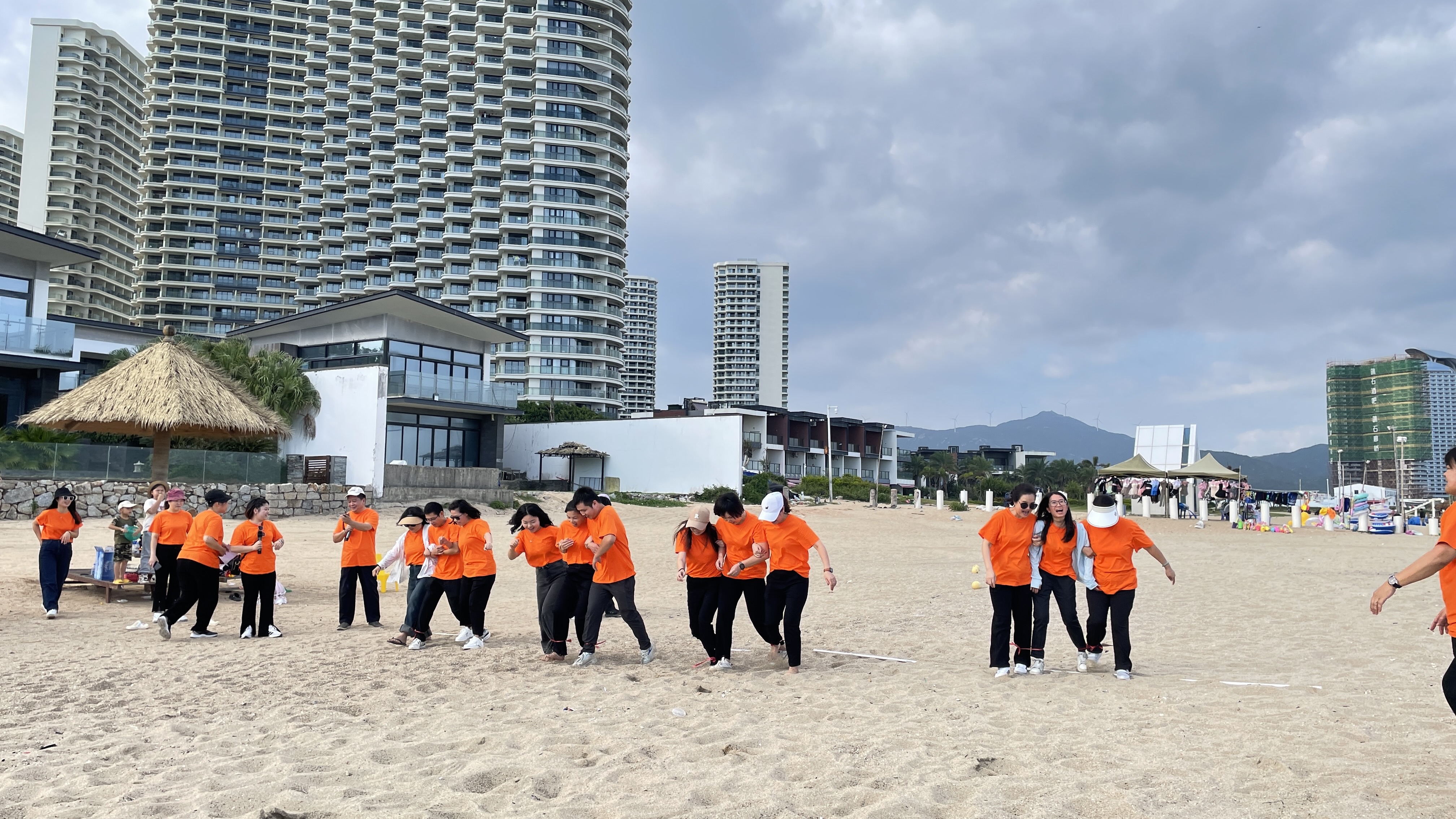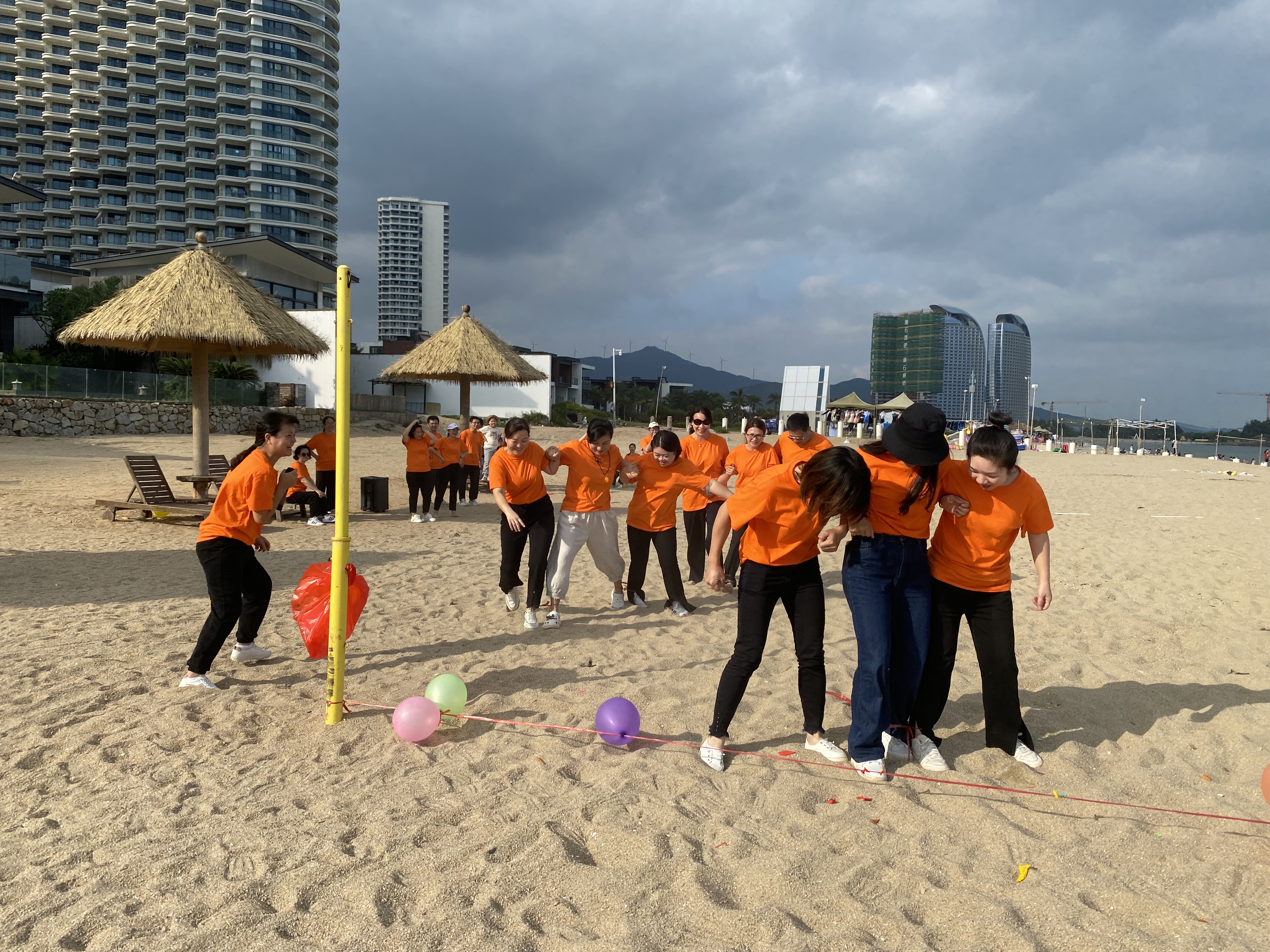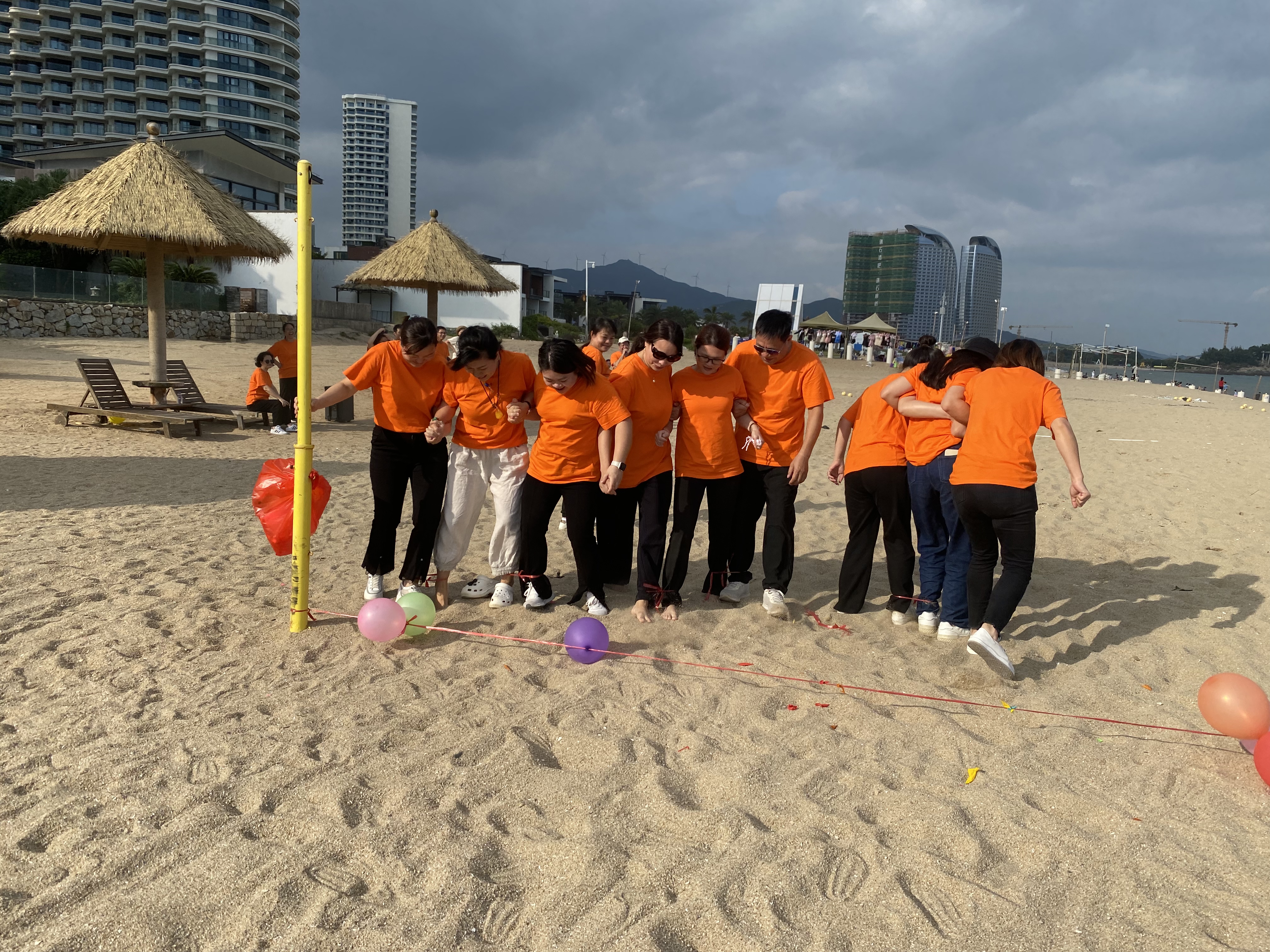 2023年10月14日前往雙月灣沙灘集中,抽簽搭配組合開始游戲:踩氣球(三人一組)、找零錢、尖叫雞蒙眼打人挑戰(zhàn)等活動;