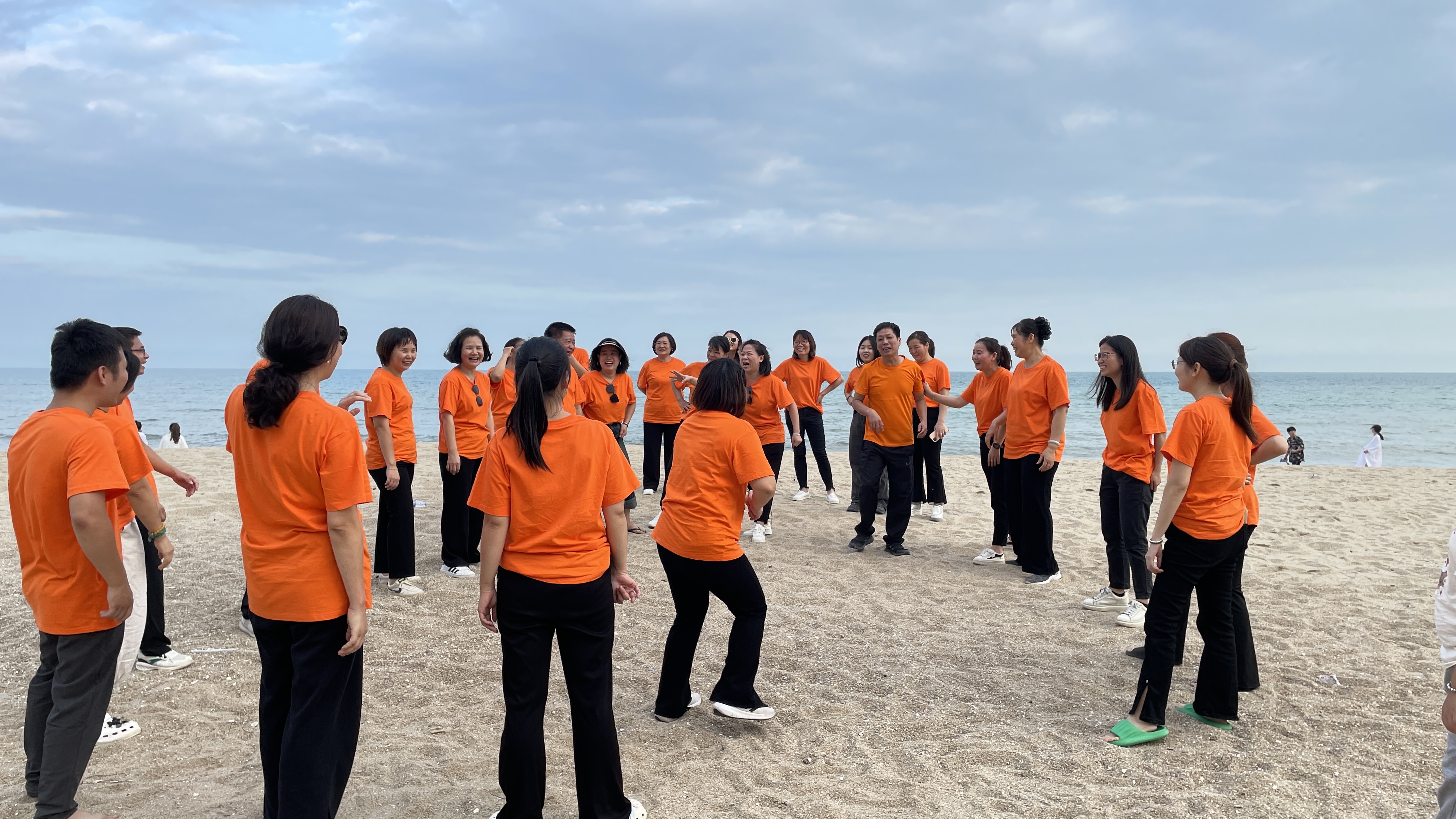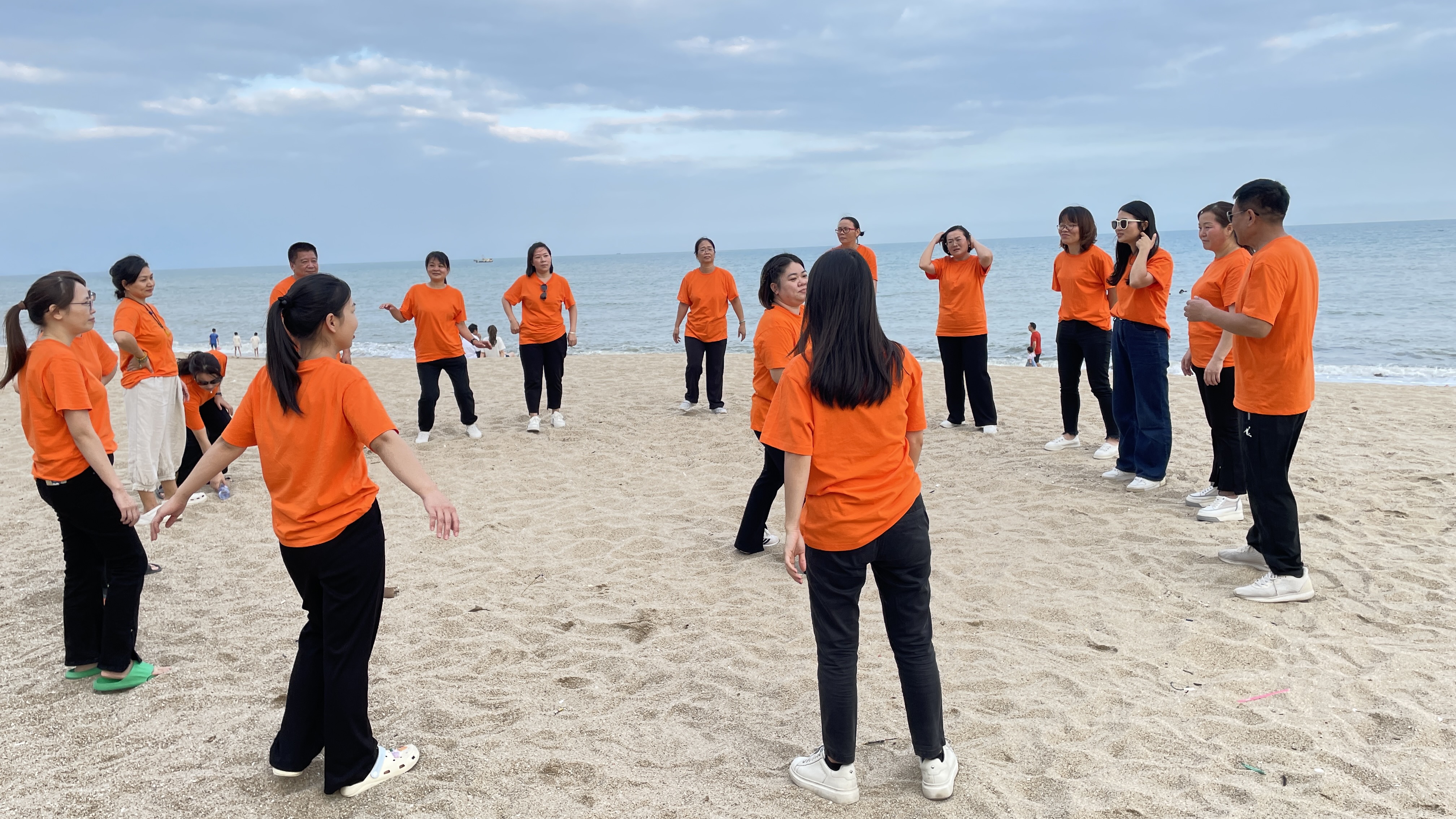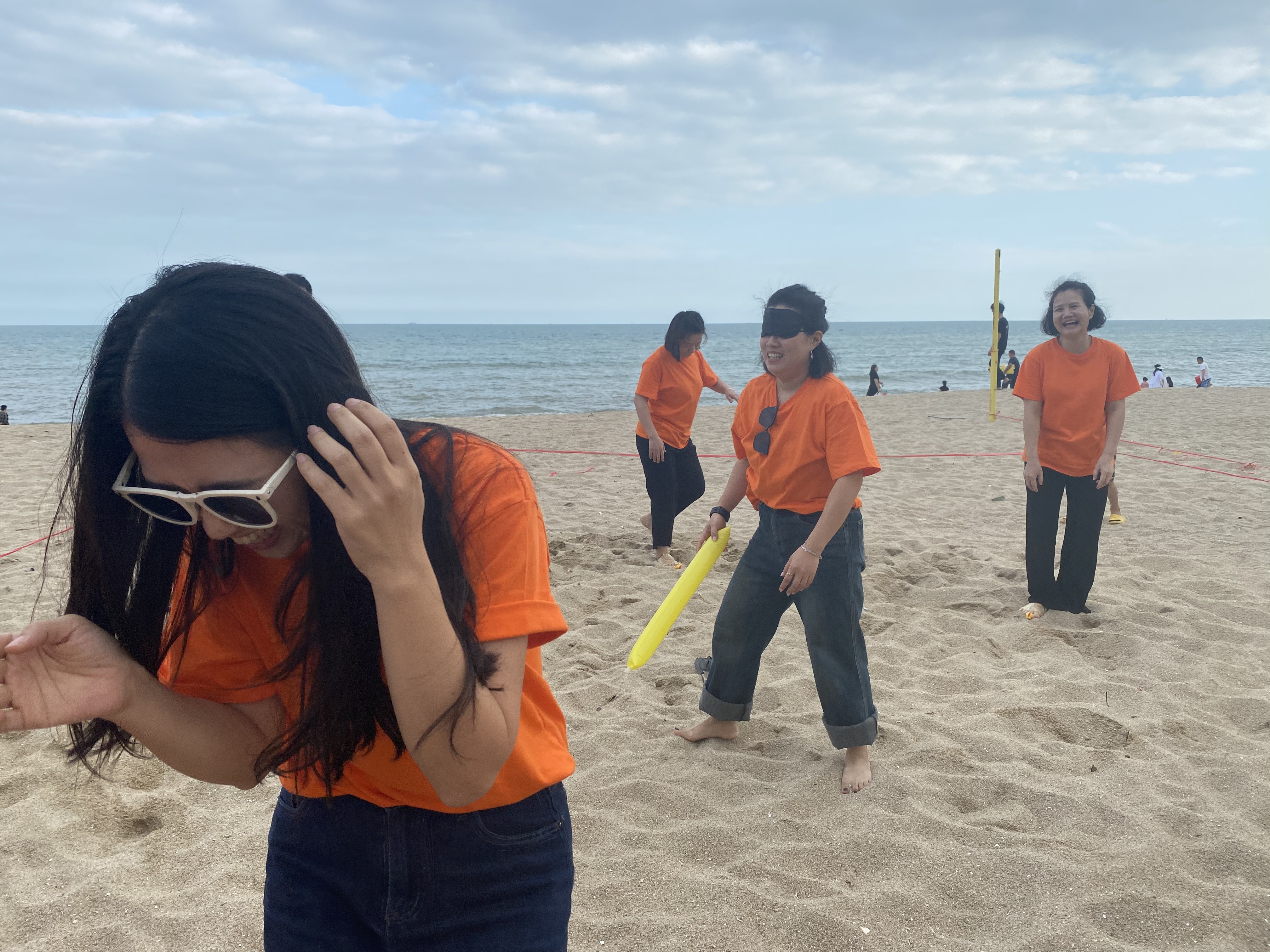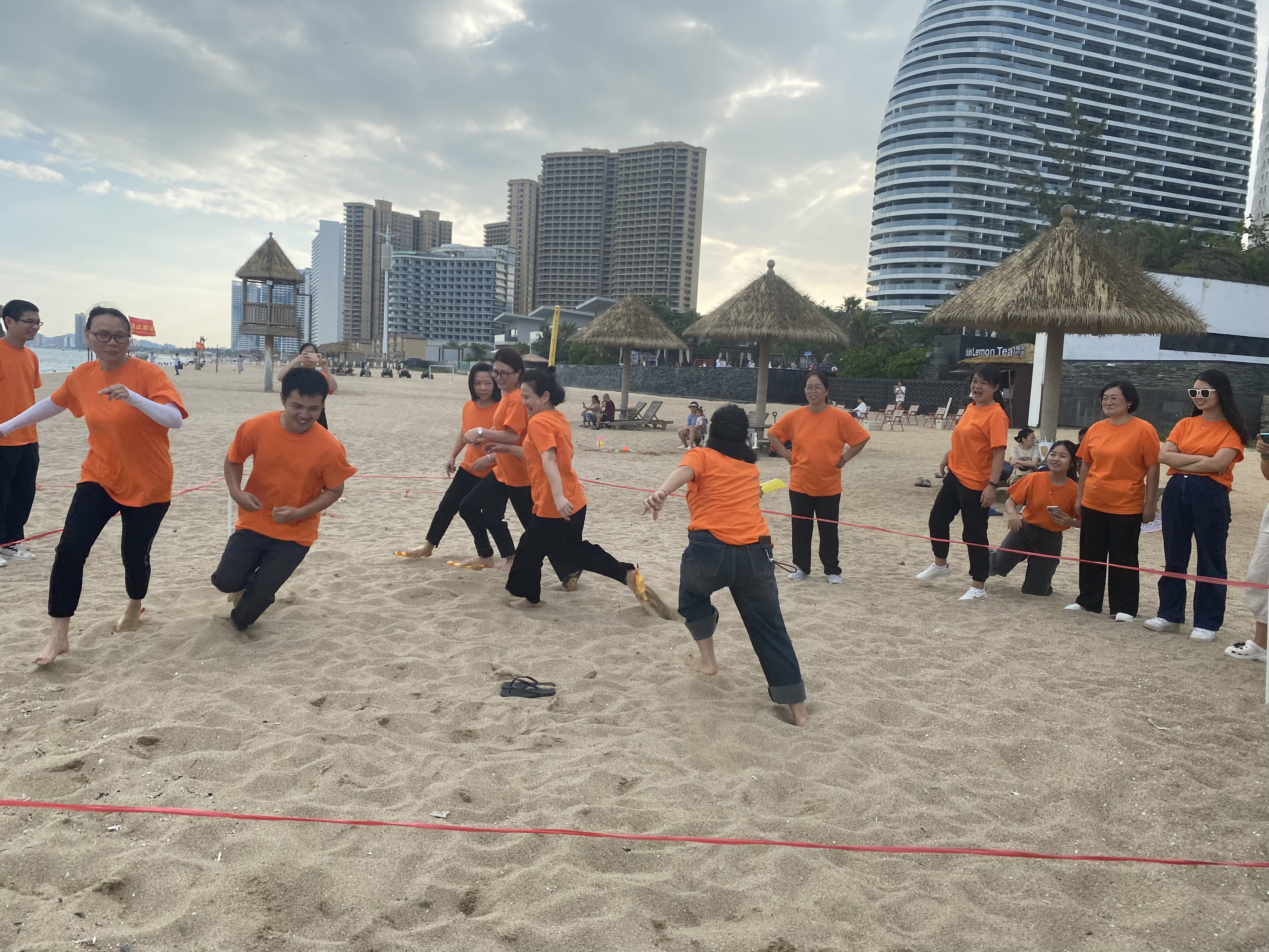 2023年10月14日前往雙月灣沙灘集中,抽簽搭配組合開始游戲:踩氣球(三人一組)、找零錢、尖叫雞蒙眼打人挑戰(zhàn)等活動;