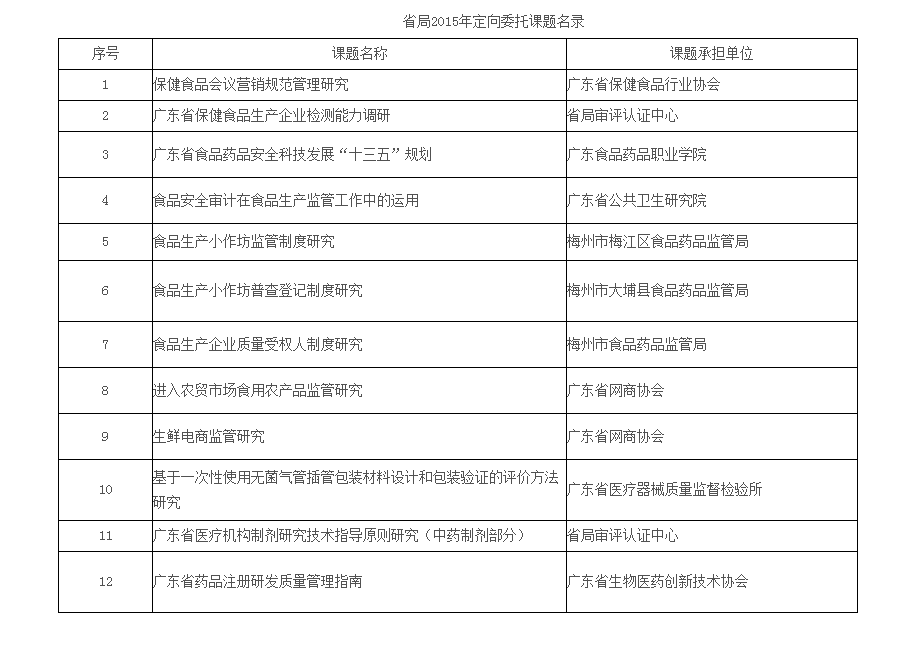 為通過科技創(chuàng)新,提高食品藥品監(jiān)管水平,省食品藥品監(jiān)督管理局大力開展科技創(chuàng)新活動(dòng),于近日啟動(dòng)了“食品安全審計(jì)在食品生產(chǎn)監(jiān)管工作中的運(yùn)用”等12個(gè)定向委托課題的系列研究,針對(duì)目前監(jiān)管工作的熱點(diǎn)、難點(diǎn)問題,著眼于食品藥品監(jiān)管理論、機(jī)制和監(jiān)管手段的研究,將為全省食品藥品監(jiān)管工作提供指引。 本次研究項(xiàng)目是省局首次以定向委托課題的形式開展的科技創(chuàng)新活動(dòng),將過去分散在機(jī)關(guān)處室的課題納入省局總體科技工作進(jìn)行統(tǒng)籌安排,從課題計(jì)劃入手,抓年度安排;從課題過程管理入手,抓課題的組織、實(shí)施、監(jiān)督及結(jié)題驗(yàn)收工作;從結(jié)果入手,重點(diǎn)落實(shí)績(jī)效管理,力爭(zhēng)將最新研究成果應(yīng)用于監(jiān)管工作,提高監(jiān)管效能。 附:《省局2015年定向委托課題名錄》
