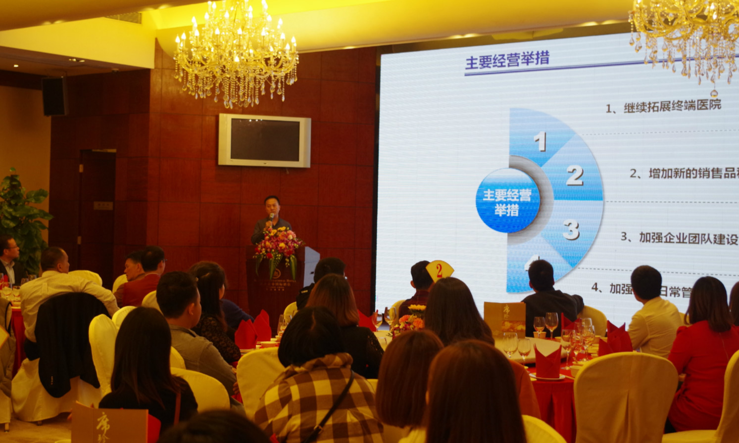 黃寶壬董事長講話 黃董提出了2017年的工作目標(biāo)。2017年公司銷售收入要增長30%以上,尤其要下大力氣拓展終端業(yè)務(wù),全年要新增醫(yī)院終端50家、OTC終端1000家。為此,公司將會(huì)不斷提高基礎(chǔ)管理能力、加強(qiáng)員工隊(duì)伍建設(shè)、增加新的品種,并切實(shí)做好全程服務(wù)工作。黃董還描繪了未來5年的發(fā)藍(lán)圖,黃董表示,公司計(jì)劃在未來5年內(nèi),布局醫(yī)藥零售終端——穗康醫(yī)藥連鎖大藥房;同時(shí),也將進(jìn)一步向上游拓展,建設(shè)自己的醫(yī)藥產(chǎn)業(yè)園,建立制造業(yè)優(yōu)勢(shì),打造完整的大健康產(chǎn)業(yè)鏈。 在這次會(huì)議上,公司總經(jīng)理鐘穗金先生、財(cái)務(wù)部經(jīng)理陳燕女士、副總經(jīng)理?xiàng)铋L明先生、銷售部經(jīng)理黃廣武先生、副總經(jīng)理李永健先生、廣州辦推廣代表林偉鋒先生、市場部經(jīng)理陳寶森先生、醫(yī)院臨床業(yè)務(wù)經(jīng)理姚英女士、采購部經(jīng)理周劍霜女士先后上臺(tái)發(fā)言,分別回顧和總結(jié)了各自負(fù)責(zé)的業(yè)務(wù),提出了新一年的工作目標(biāo)。會(huì)議由董事長助理董艾葆先生主持。
