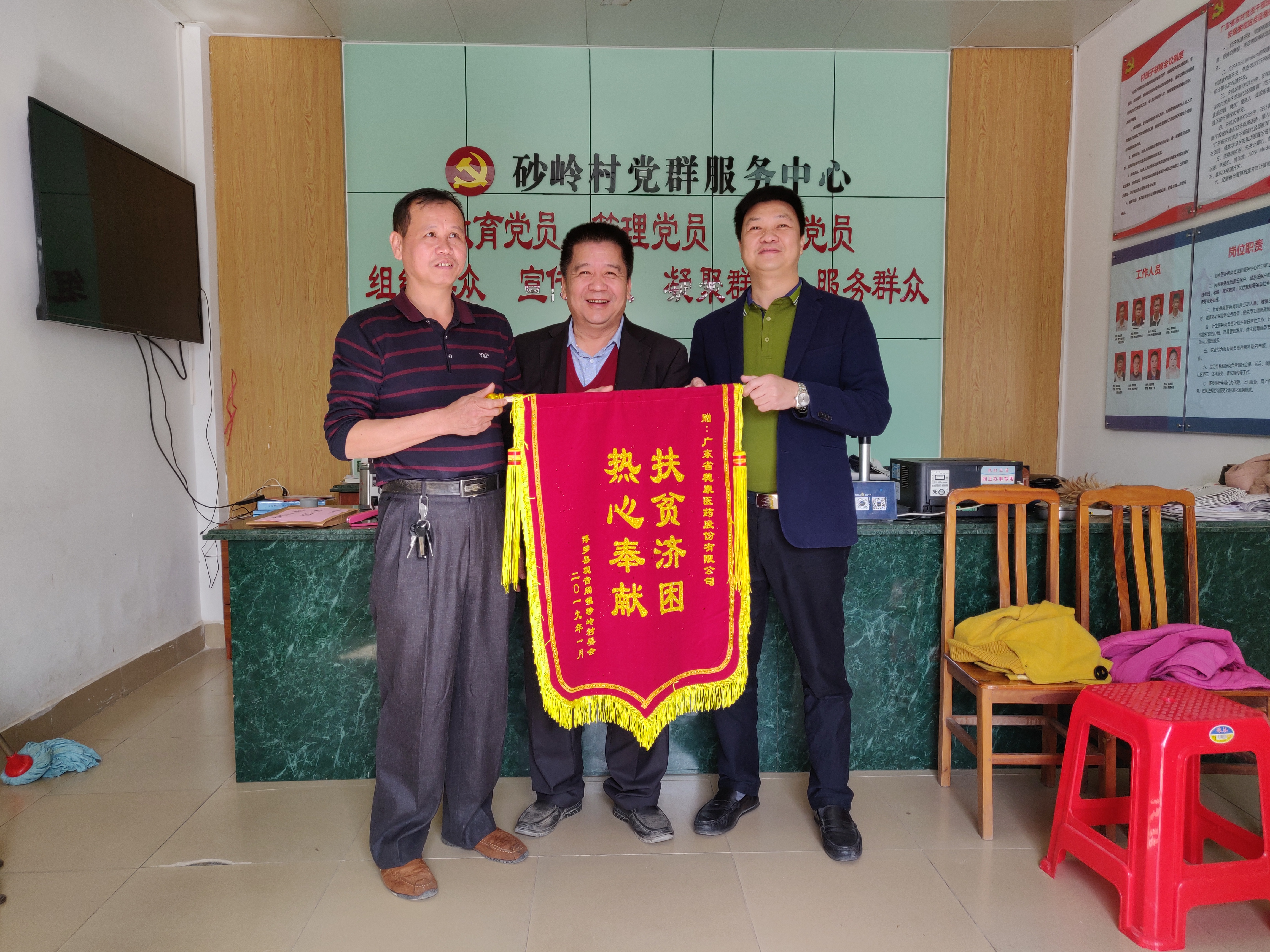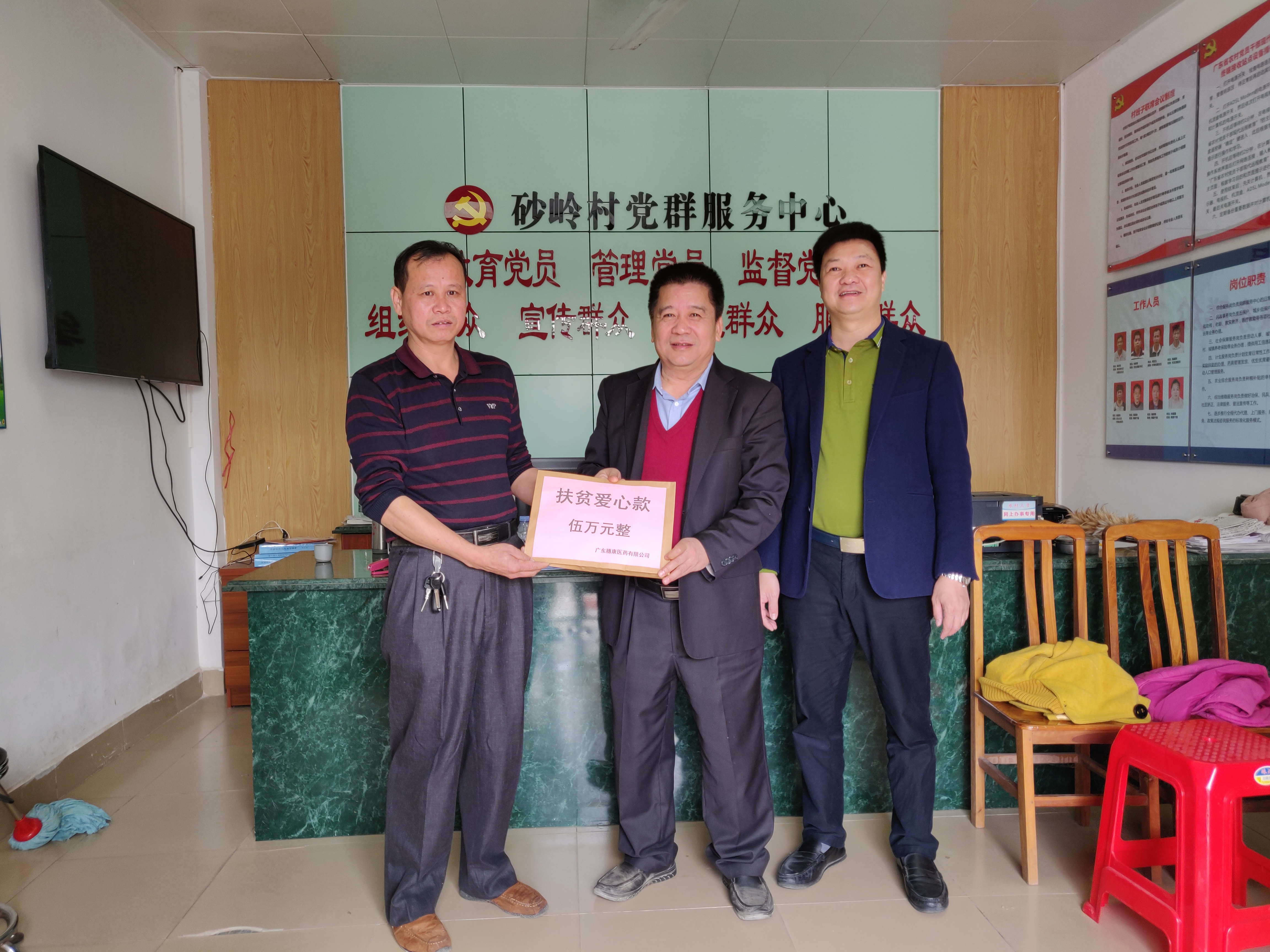 受穗康醫(yī)藥有限公司黃寶壬董事長(zhǎng)委托,公司鐘穗金、李永健兩位領(lǐng)導(dǎo)前往觀音閣砂嶺村委會(huì),代表黃董與穗康全體員工給村民送去慰問金5萬元。