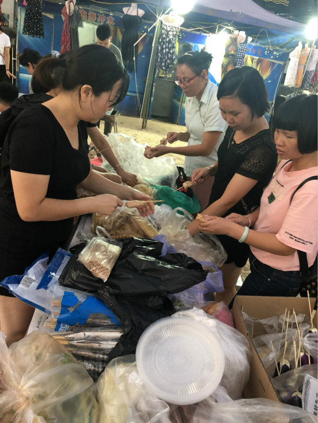 到達目的之后安排住宿與準備晚上燒烤食品。也有部分人員在海灘上游玩,也有下海游泳的。