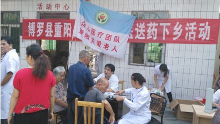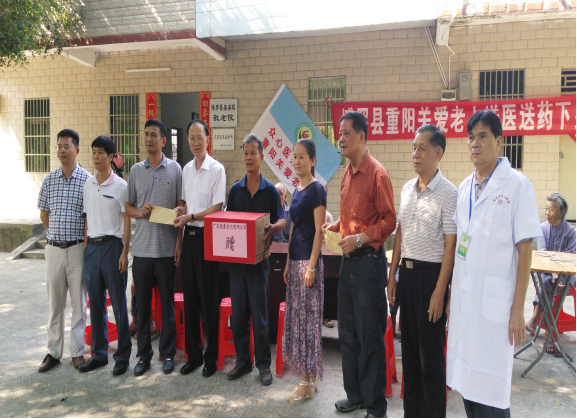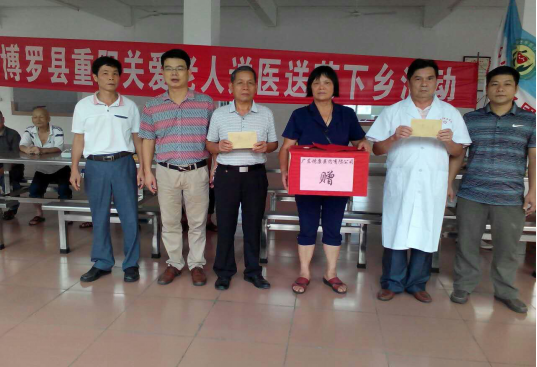 2015年10月19日,博羅縣重陽(yáng)節(jié)關(guān)愛(ài)老年活動(dòng)啟動(dòng)儀式在博羅縣中醫(yī)醫(yī)院舉行,本次活動(dòng)由縣老齡委、民政局、衛(wèi)計(jì)局、縣老年醫(yī)療衛(wèi)生協(xié)會(huì)、縣紅十字會(huì)主辦,縣中醫(yī)醫(yī)院承辦,博羅彭城慈善會(huì)、廣東穗康醫(yī)藥有限公司、博羅康佳、羅浮山黃龍宮太上丹道養(yǎng)生試范基地協(xié)辦。出席本次活動(dòng)的領(lǐng)導(dǎo)和嘉賓為:博羅縣原人大主任蔡民壽、博羅縣原政協(xié)副主席兼統(tǒng)戰(zhàn)部長(zhǎng)劉細(xì)雅、博羅縣老年醫(yī)療衛(wèi)生協(xié)會(huì)會(huì)長(zhǎng)陳勝如、博羅康佳董事長(zhǎng)曹巨潮及舉辦單位單位相關(guān)負(fù)責(zé)人。儀式結(jié)束后,舉辦單位相關(guān)領(lǐng)導(dǎo)帶領(lǐng)眾心醫(yī)療團(tuán)隊(duì)到博羅縣羅陽(yáng)鎮(zhèn)田牌敬老院舉行慰問(wèn)及送醫(yī)送藥義診活動(dòng)。 本次活動(dòng)到10月30日?qǐng)A滿結(jié)束,共慰問(wèn)9個(gè)鄉(xiāng)鎮(zhèn)敬老院老人,總?cè)藬?shù)157人,送去醫(yī)療器械一批(電子血壓計(jì)、電子探熱針、老人護(hù)理包)和慰問(wèn)金,為老人進(jìn)行健康檢查和建立健康檔案,并進(jìn)行義診送醫(yī)送藥活動(dòng)。活動(dòng)取得了圓滿成功,受到當(dāng)?shù)卣?、敬老院老人及群眾的一致好評(píng)。本次活動(dòng)得到羅陽(yáng)鎮(zhèn)衛(wèi)生院、泰美鎮(zhèn)衛(wèi)生院、石壩鎮(zhèn)衛(wèi)生院、柏塘鎮(zhèn)衛(wèi)生院、湖鎮(zhèn)鎮(zhèn)衛(wèi)生院、長(zhǎng)寧鎮(zhèn)衛(wèi)生院、福田鎮(zhèn)衛(wèi)生院、楊村鎮(zhèn)衛(wèi)生院、公莊鎮(zhèn)衛(wèi)生院參與和大力支持。 如下為活動(dòng)部分掠影: