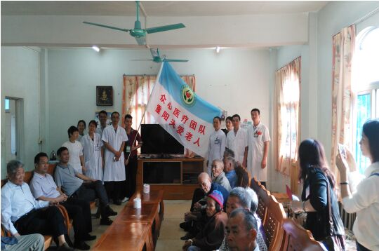 圖為眾心醫(yī)療團(tuán)隊(duì)及柏塘政府領(lǐng)導(dǎo)到柏塘鎮(zhèn)敬老院進(jìn)行慰問(wèn)活動(dòng)。