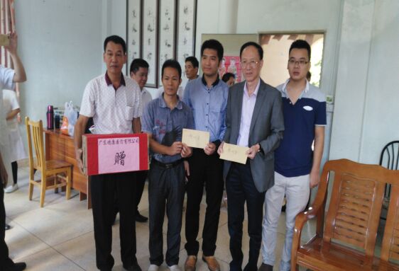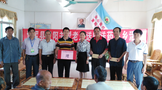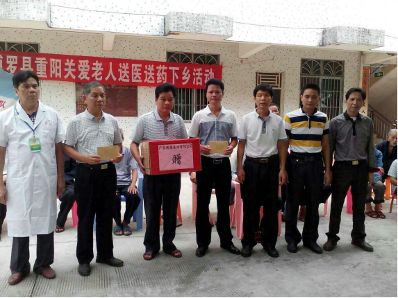 圖為廣東穗康醫(yī)藥有限公司、博羅康佳、羅浮山黃龍宮太上丹道養(yǎng)生試范基地、博羅彭城慈善會(huì)為敬老院送上慰問(wèn)金及醫(yī)療用品
