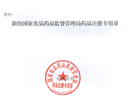 食藥監(jiān)辦[2012]44號 各省、自治區(qū)、直轄市食品藥品監(jiān)督管理局(藥品監(jiān)督管理局)、國家局機關(guān)各司局,有關(guān)單位: 根據(jù)《中華人民共和國行政許可法》的有關(guān)規(guī)定以及北京市公安局等9部門《關(guān)于進一步加強印章管理工作的通告》要求,自2012年4月16日起,啟用新的國家食品藥品監(jiān)督管理局藥品注冊專用章。原藥品注冊專用章同時廢止。